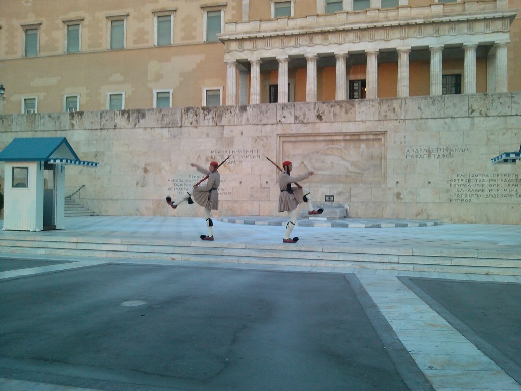 La ora 19 , în piața SYNTAGMA am admirat schimbul de garzi de la Palatul Parlamentului.