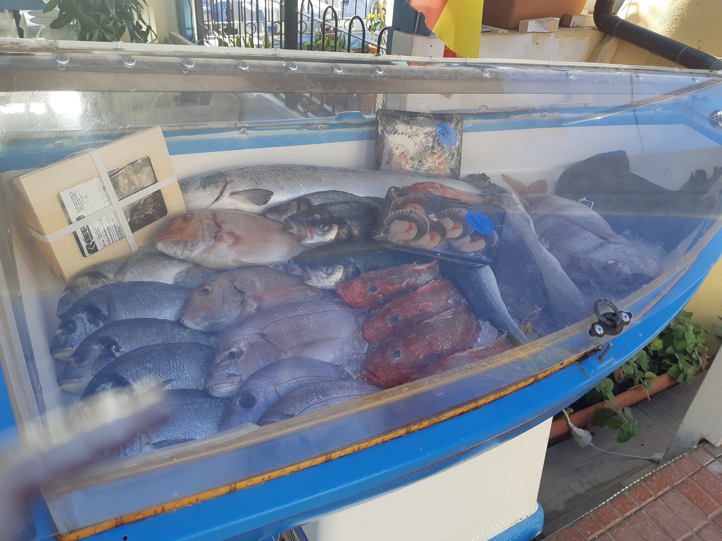 O porție , în timpul prânzului, la o terasă pe malul mării ( pește+garnitură+salată sau carne+garnitură+salată) = 5€.