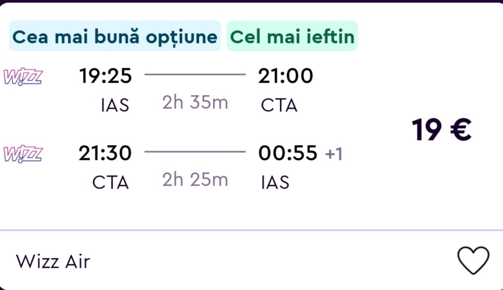avion IAȘI – CATANIA 19€/pers. dus-întors, cu Wizair ,cu bagaj mic de mână și locuri alocate în mod aleatoriu.