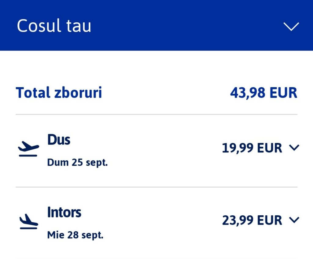 In costul de 84€ este inclus prețul biletului de avion dus-întors, cu bagaj mic de mână și loc alocat în mod aleatoriu, și prețul cazării pentru 3 nopți.