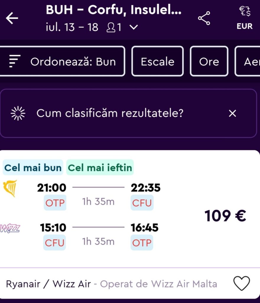 - prețul biletului de avion dus – întors cu bagaj mic de mână și loc alocat în mod aleatoriu;