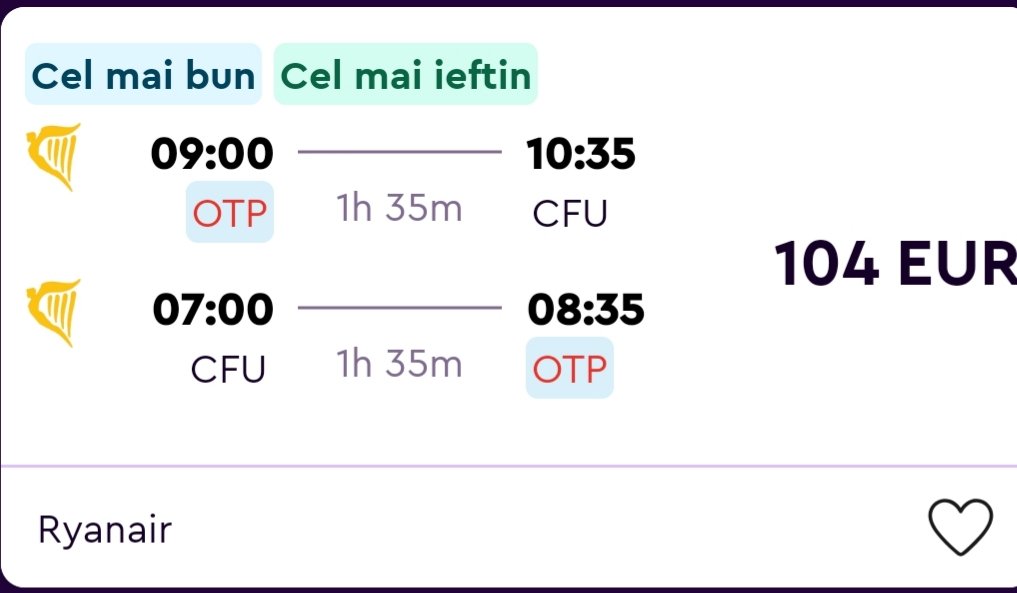 Avion București – Corfu 104€/pers. dus – întors cu Ryanair.