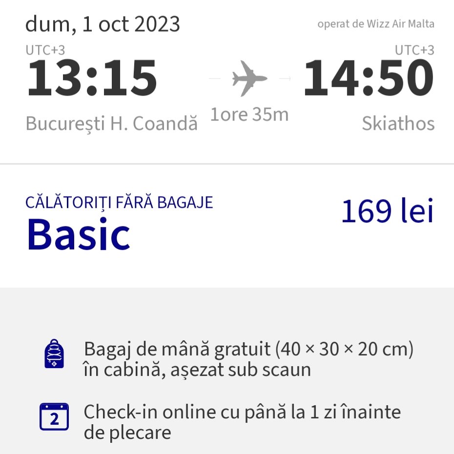 Avion București – Skyathos 68€/pers. dus – întors cu Wizzair